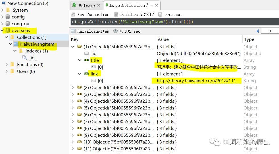 然后待爬取完成可以到数据库里查看存储结果,这篇文章当 中没有写分析网站相关的内容,因为这次爬取得网站很简单没有啥加密手段,所以我没有写分析过程