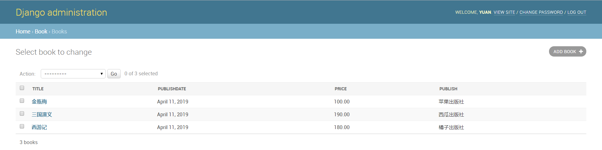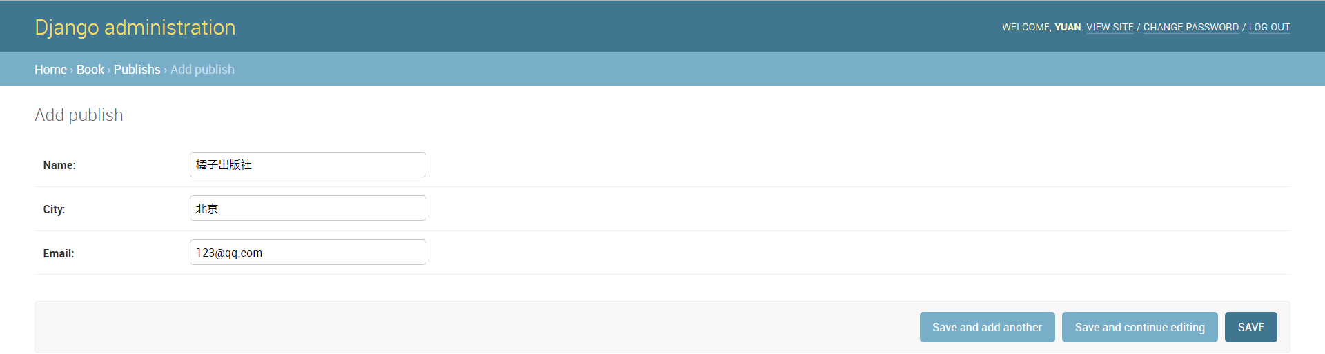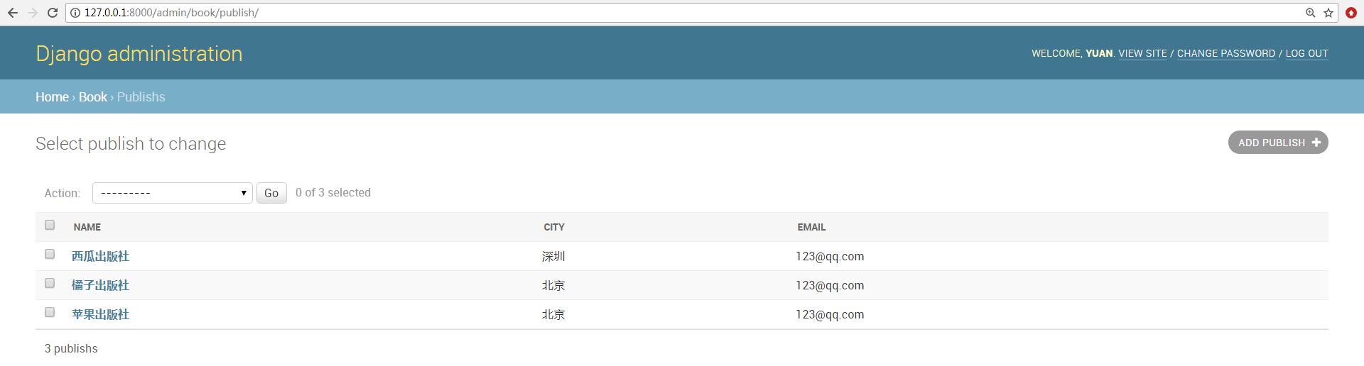 重启项目,浏览器访问 http://127.0.0.1:8000/admin/book/publish/
