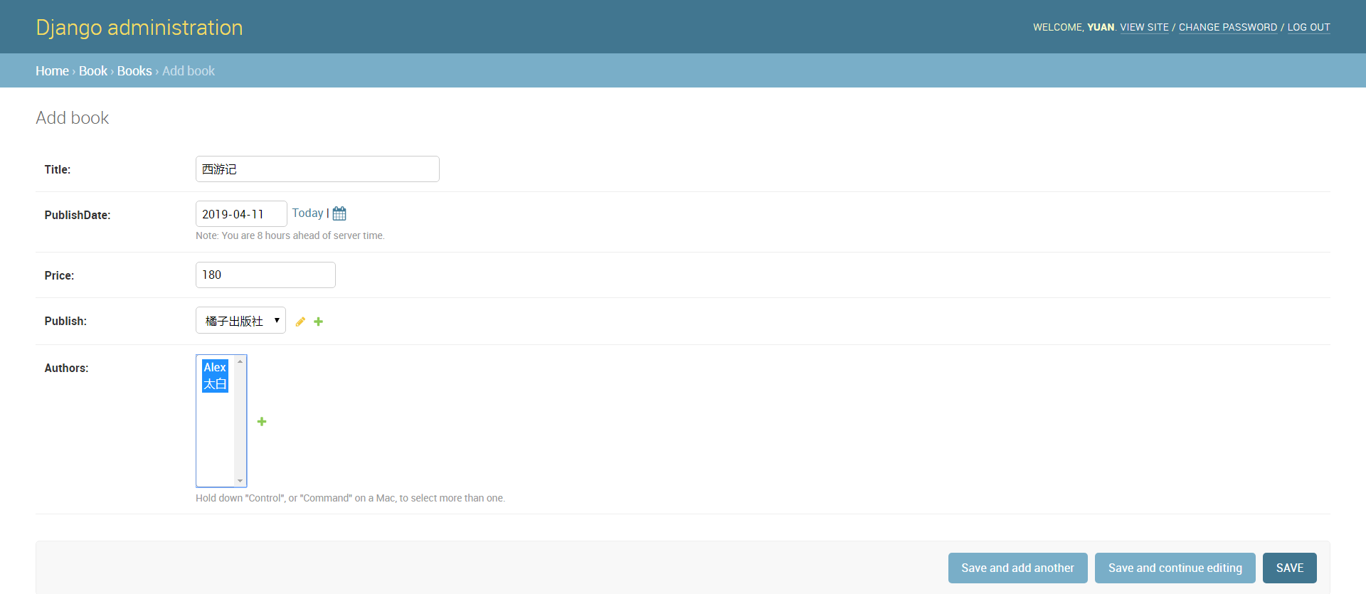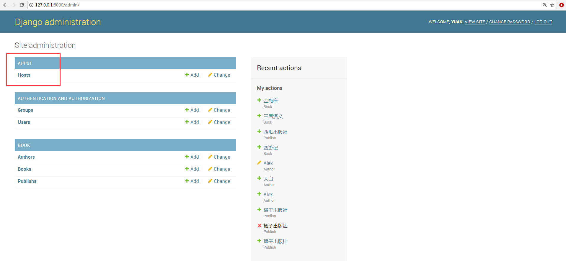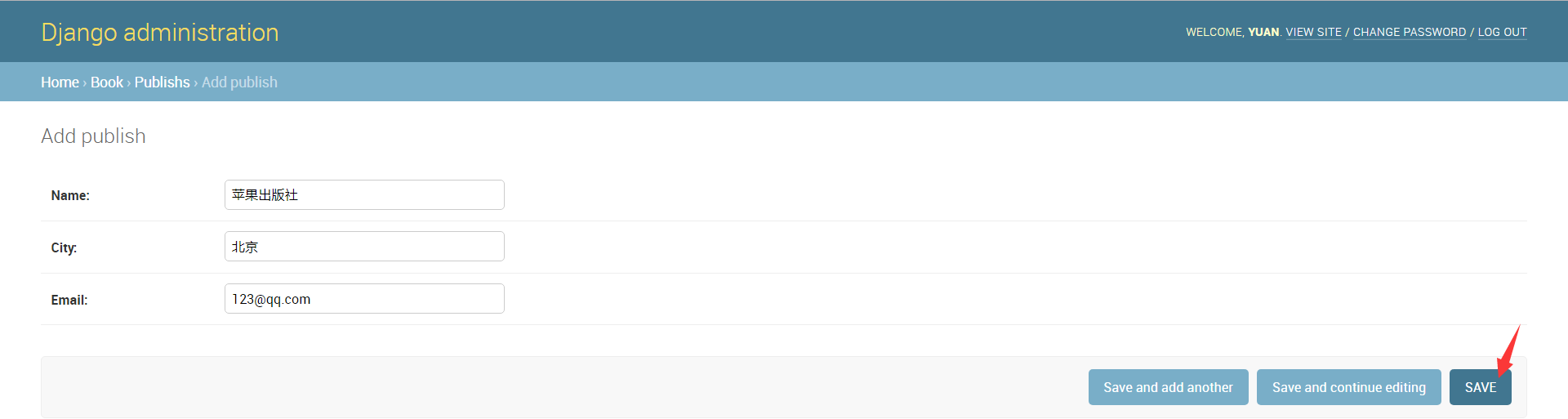 重启项目,浏览器访问 http://127.0.0.1:8000/admin/book/publish/