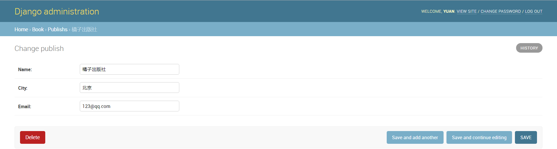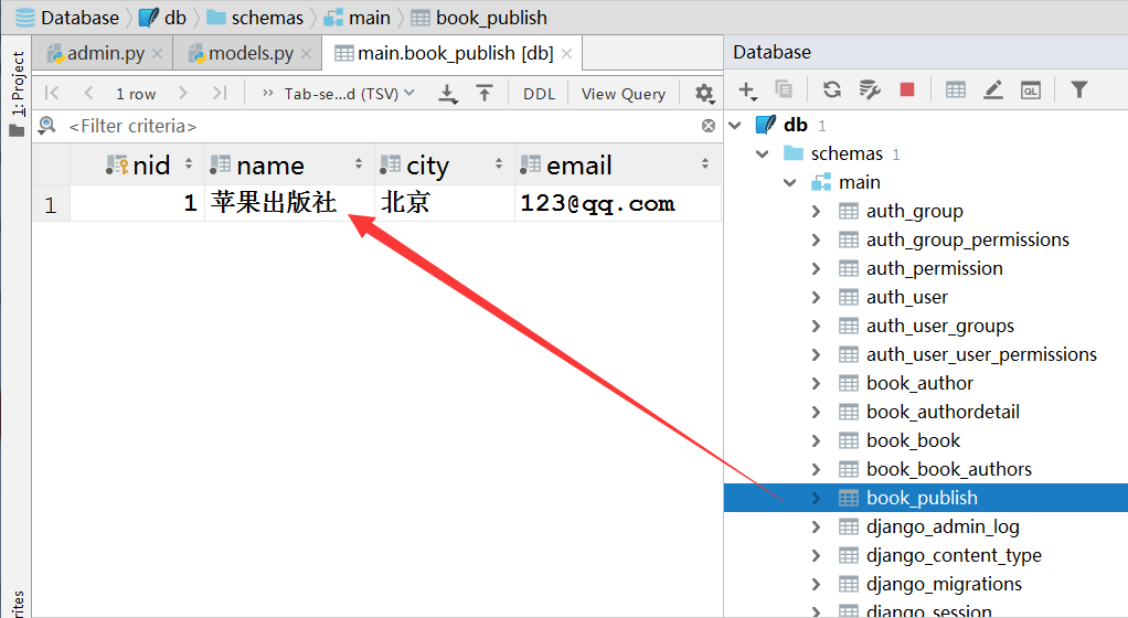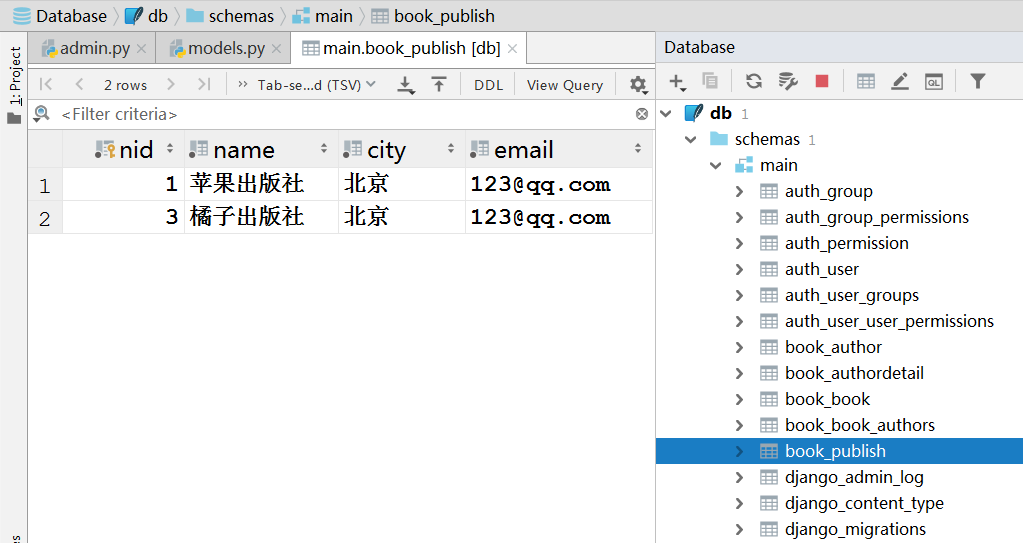 在book/models.py里面的class Publish下面添加 def __str__(self): return self.name