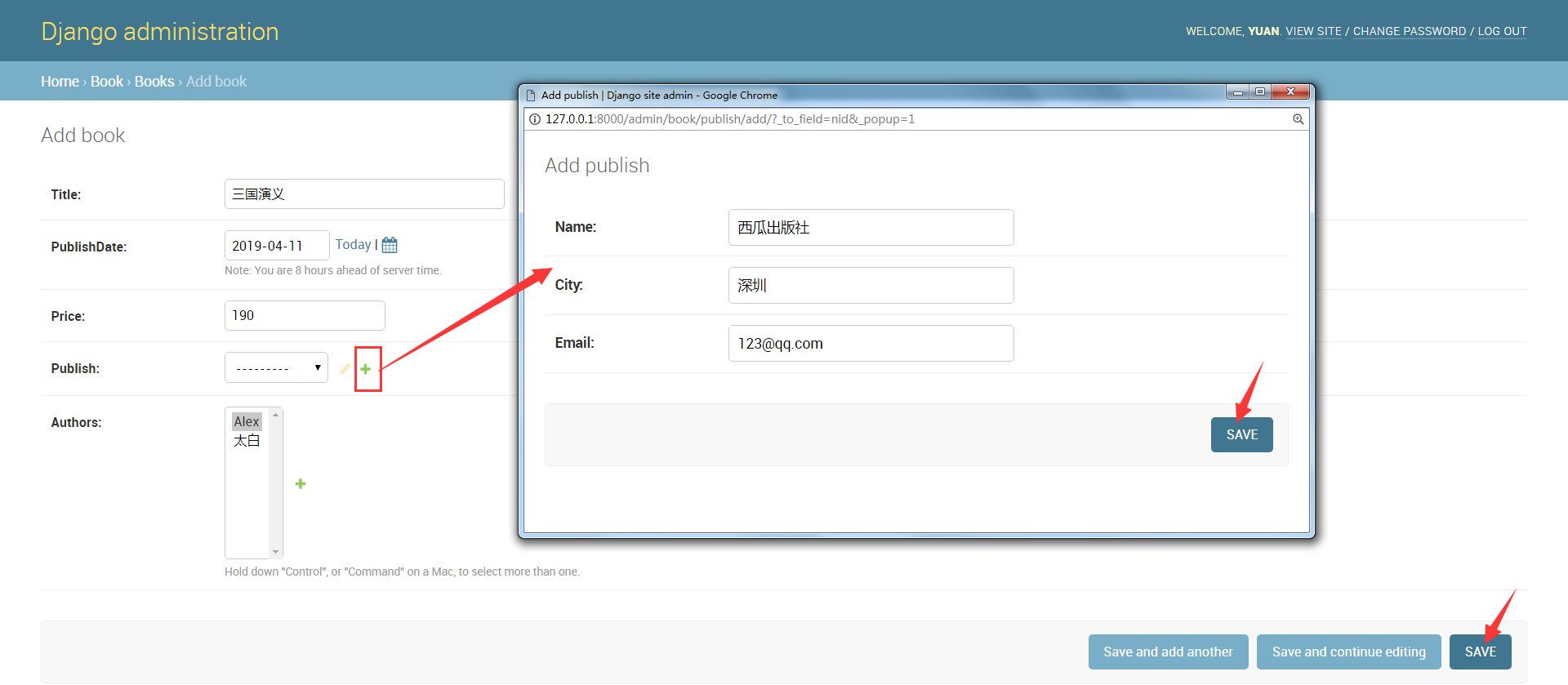 manage.py@bms > createsuperuser 输入用户名:yuan 邮箱:不写 输入密码:yuan1234 再次输入密码:yuan1234