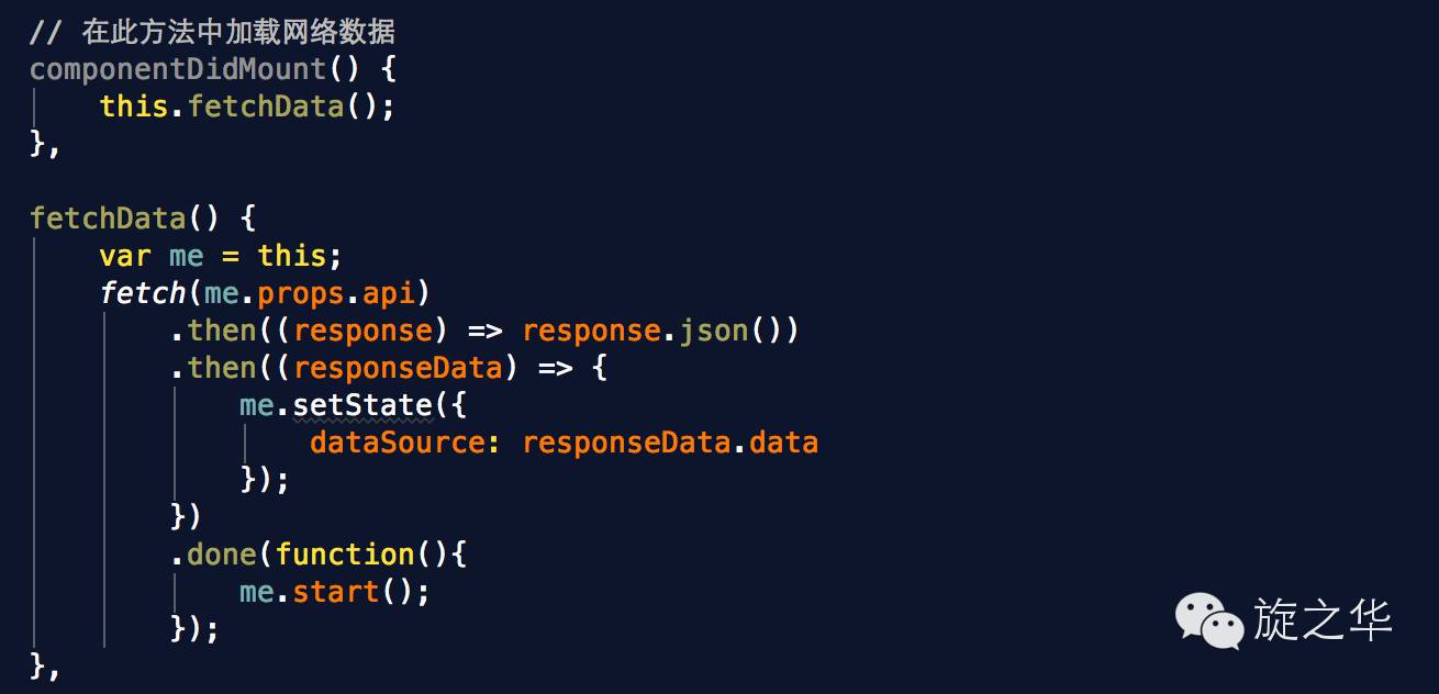 在调用了render方法后,组件加载成功并被成功渲染出来以后,所要执行的后续操作,一般会在这个函数中处理网络请求等加载数据的操作;