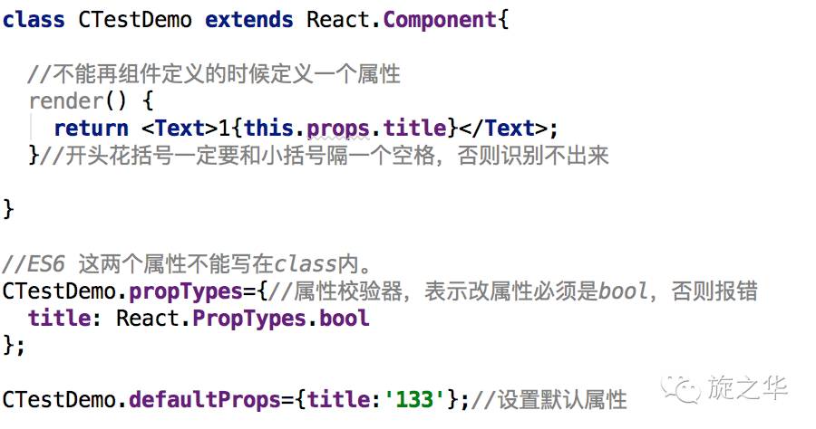 在ES6中,其为属性:defaultProps(可以标识static定义在class内,也可以定义在class外),而在ES5中,其为方法:getDefaultProps: function(){return {name:value}};