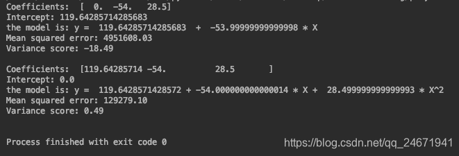 如图,第一部分是 fitintercept 为 True 时的结果,第二部分是 fitintercept 为 False 时的结果。