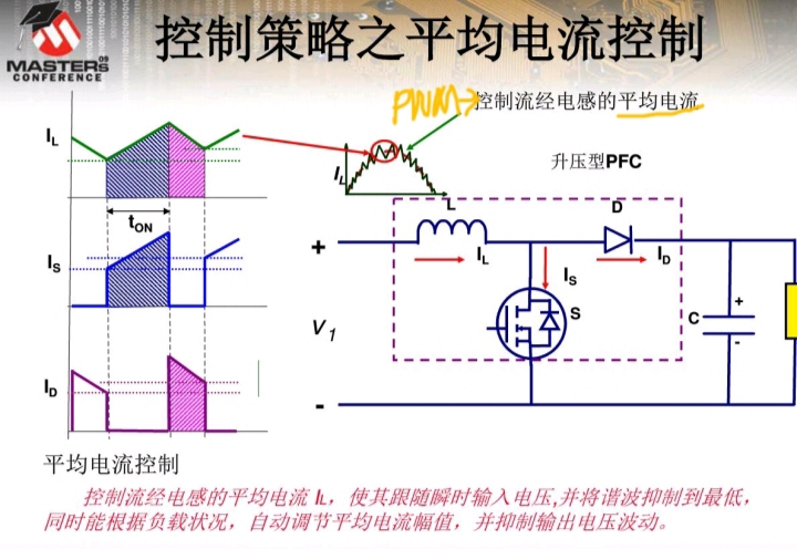 - PFC处理器调控 "PFC电感L 在电流不为0(储能和释能)"时导通度,