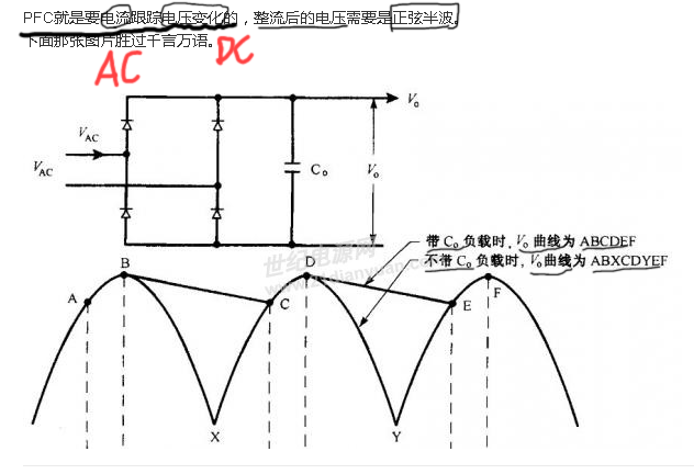 是因为要 "维持整流二极管导通, 维护滤波电容的充电状态 及 改善输入电流". - PFC输出电压 高于 交流输入端的峰值电压。