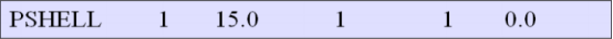 o PSHELL 编号 1,包括材料类型编号 1,以及厚度为 5 的三项参数定义。