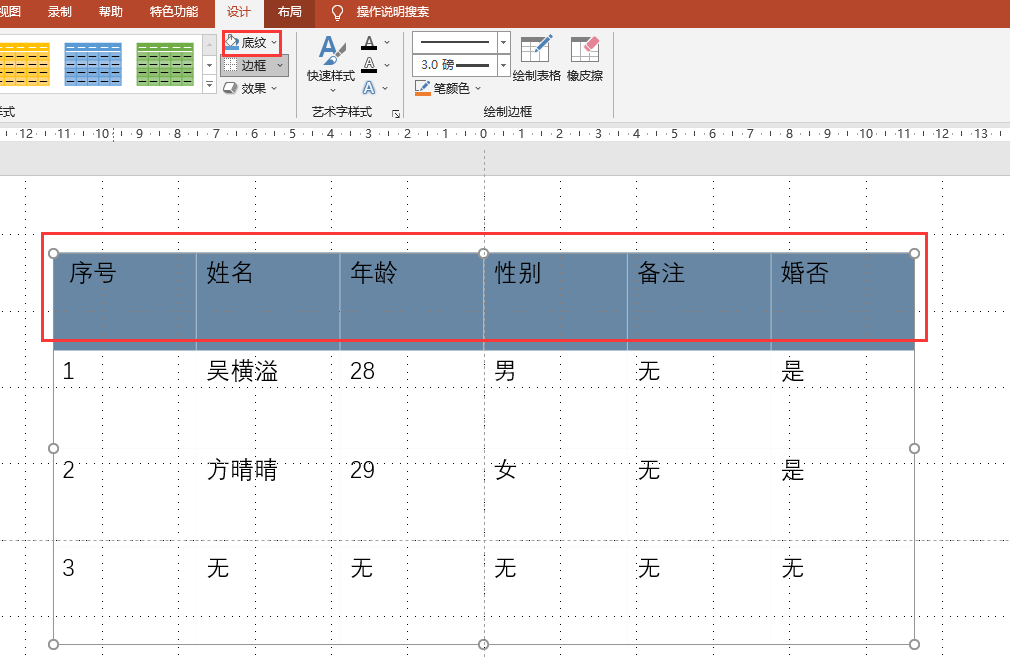 想要删除表格中的单元格的话,一种方式是将其设置为无填充颜色,边框设置为无。另一种时合并单元格