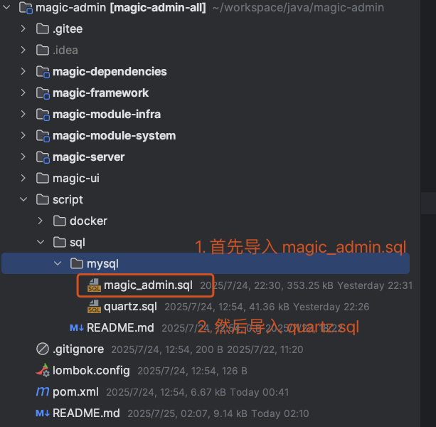 magic_admin.sql:用于创建或初始化 MagicAdmin 后台管理系统所需的数据库结构和初始数据 。