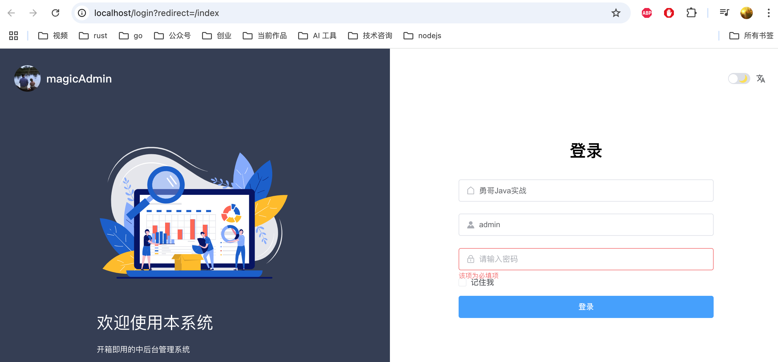 默认账号密码:admin/magic123456