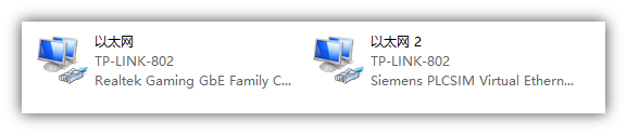 安装完成后,电脑中会额外多出一个虚拟网卡,名称为Siemens PLCSIM Virtual Ethernet Adapter,如下图: