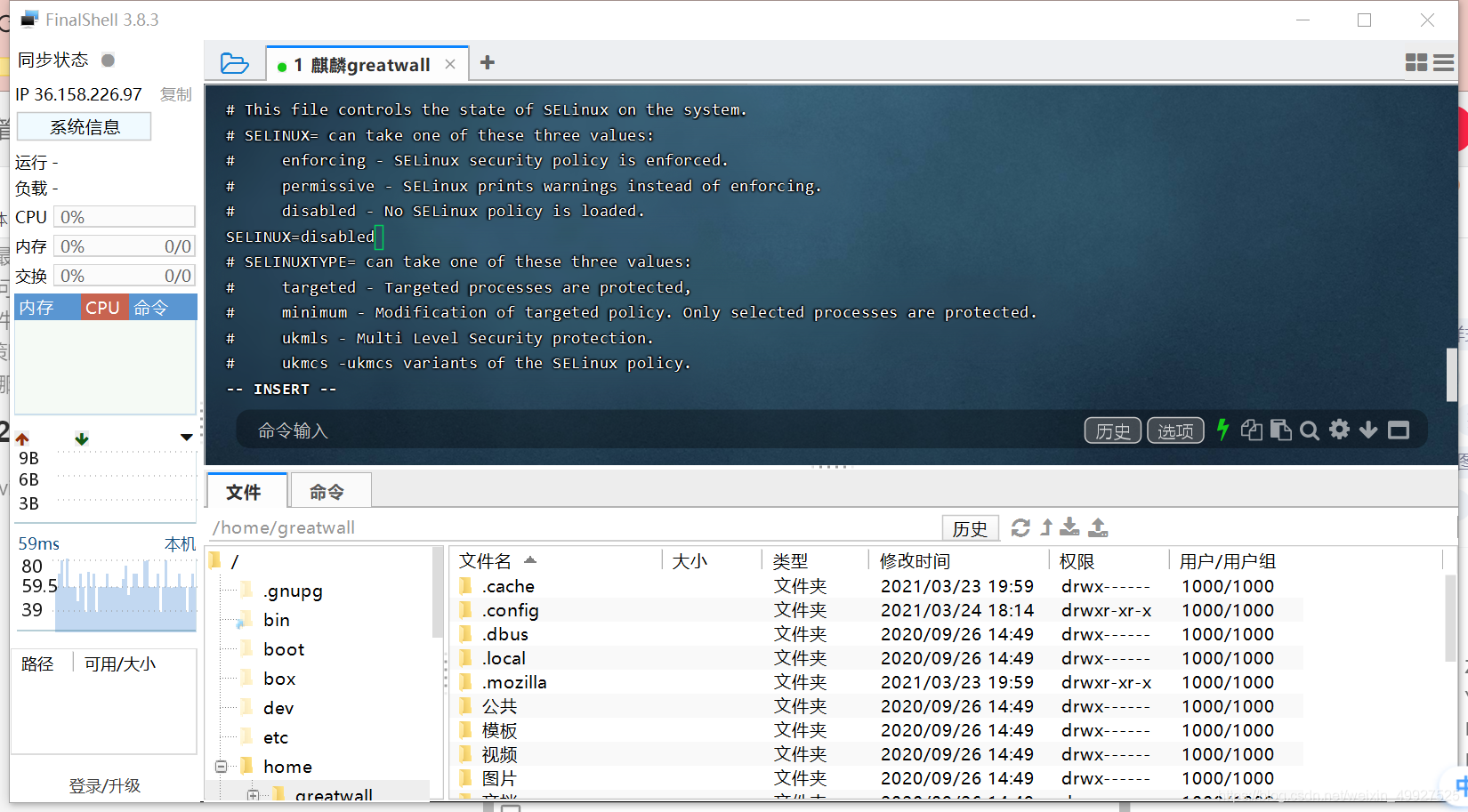 - 命令:vi /etc/selinux/config,将SELinux行改为disabled