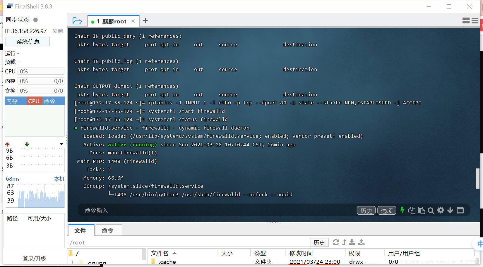 firewall-cmd --zone=public --add-port=80/tcp --permanent - 重启防火墙: