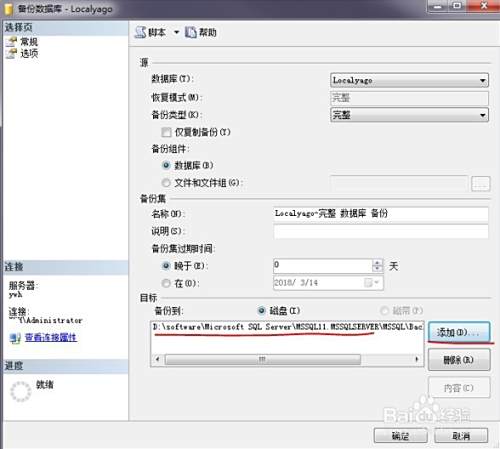 SQL Server数据库备份的镜像 一个完整备份可以分开镜像 USE master GO BACKUP DATABASE [testdatabase] TO DISK = N'C:\testdata ...