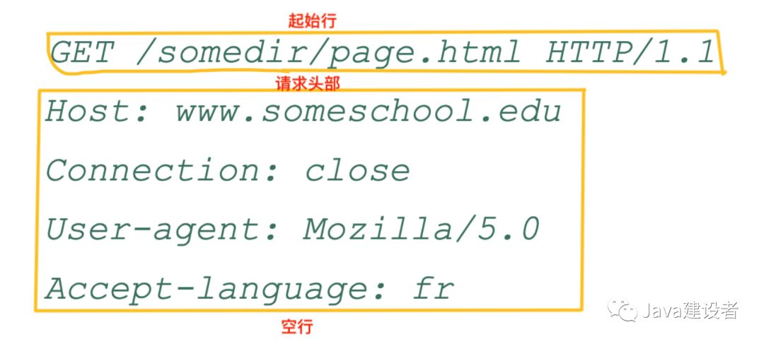 每个报文的起始行都是由三个字段组成:方法、URL 字段和 HTTP 版本字段。