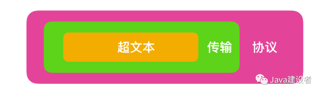 超文本传输协议可以进行文字分割:超文本(Hypertext)、传输(Transfer)、协议(Protocol),它们之间的关系如下