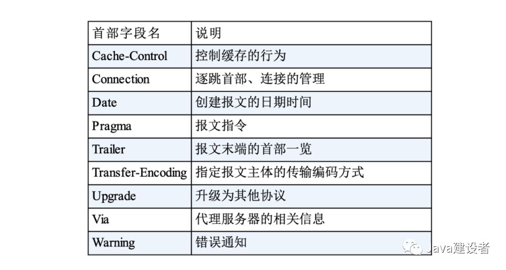 下面列举了 HTTP/1.1 中的逐跳首部字段。除这 8 个首部字段之外,其他所有字段都属于端到端首部。