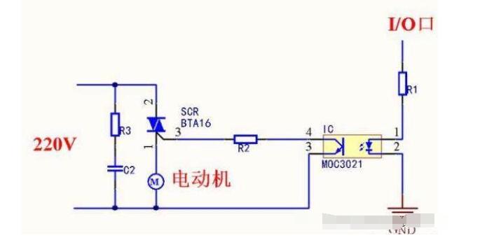 220V交流电动机, 通过高电压的专用光耦3052隔离,