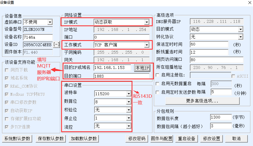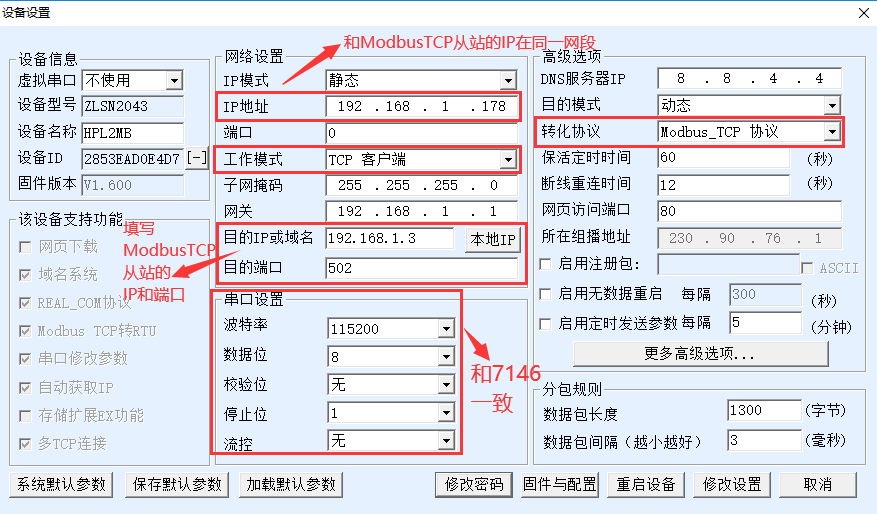 图一 导轨式串口服务器ZLAN5143D参数设置