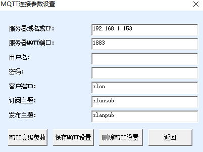 依次点击“固件与配置-MQTT配置”,这里是准备连接一个内网的emqx MQTT服务器(Broker),设置如上参数后点击“保存MQTT配置”。然后点击“返回”。