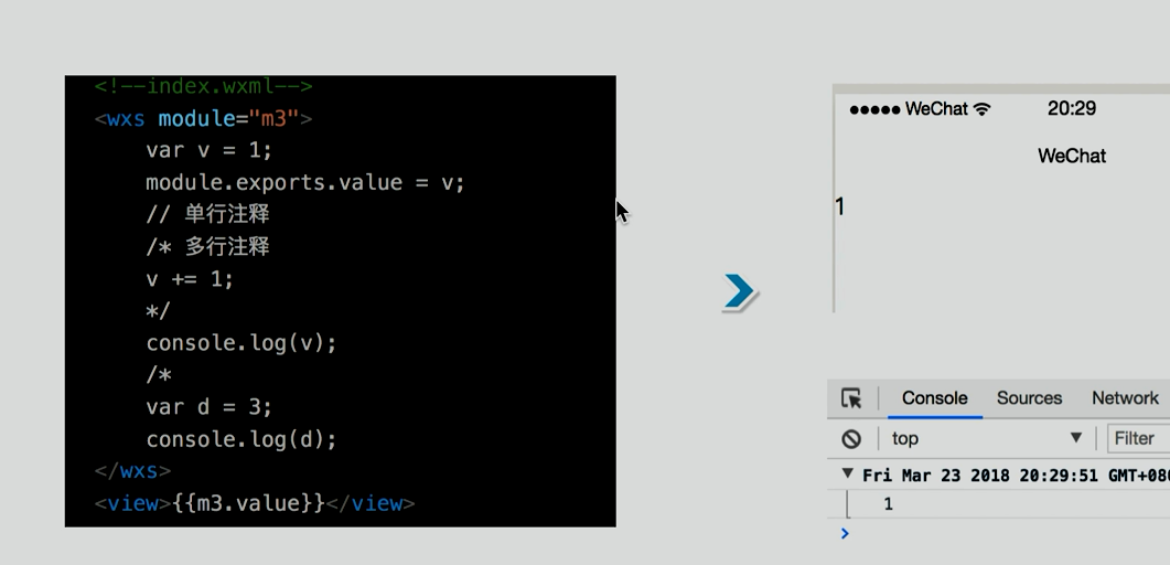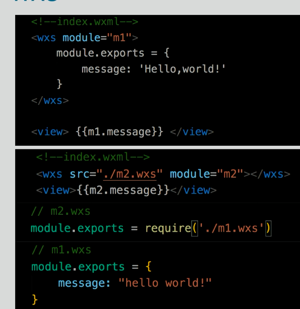 微信小程序的wxs语法 可以当做vue的计算属性和vue filter 使用.因为wxs中的函数可以写在{{ }}中 . 例如: 可用在 <view>{{ foo() }}</v ...