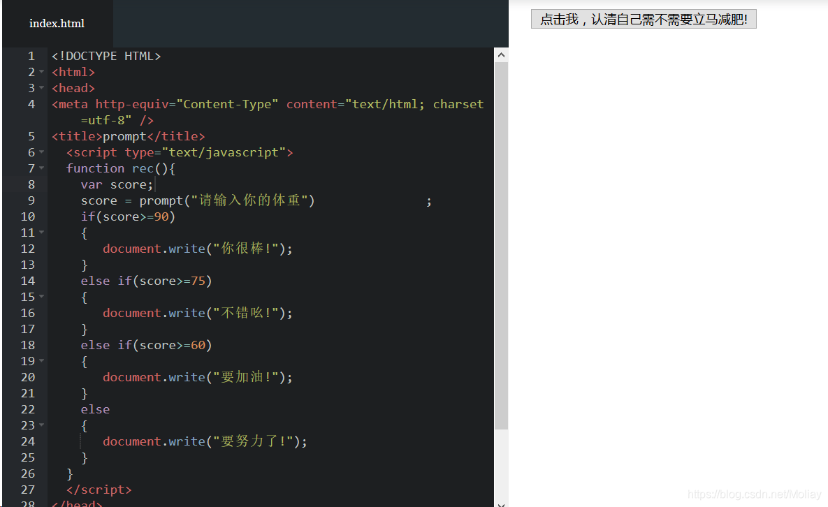 4. prompt弹出消息对话框,用于需要与用户进行交互的情形
