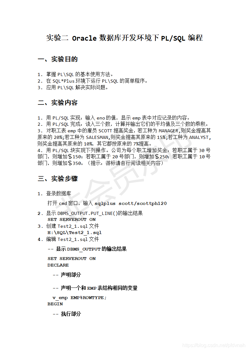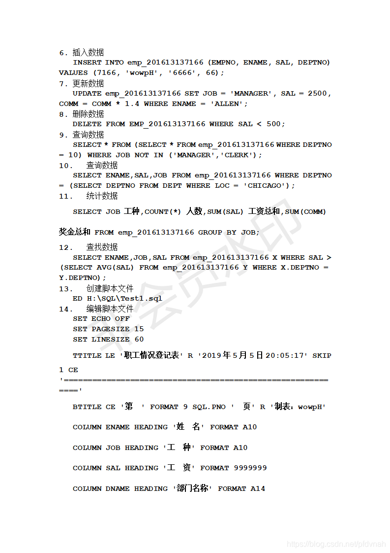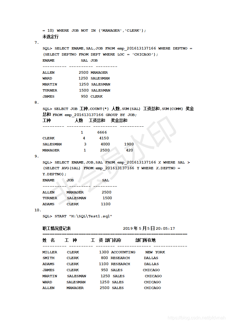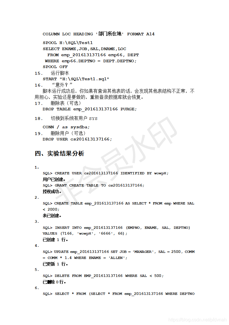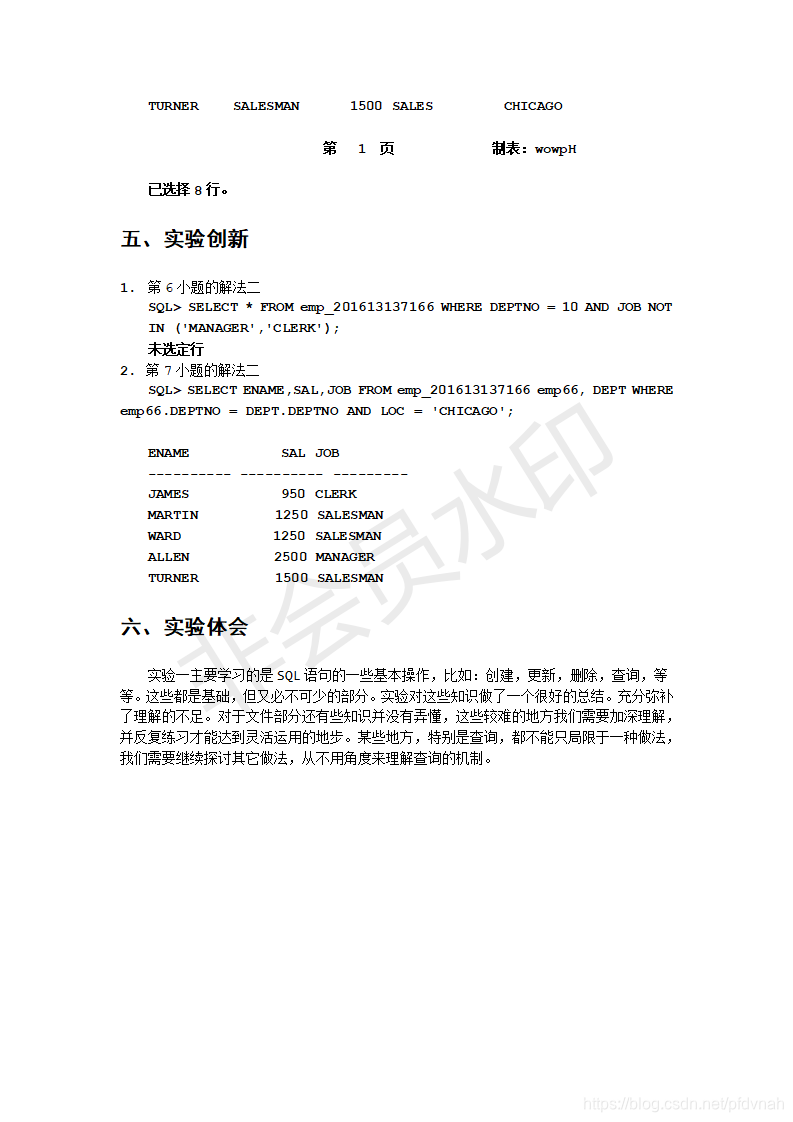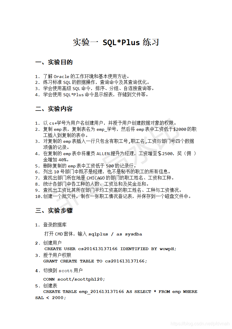 WUST Oracle数据库 实验一实验二