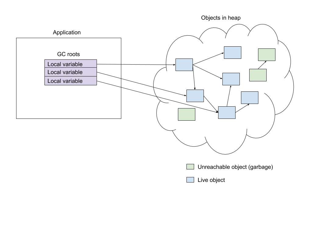 ZGC的标记分为三个阶段。 第一阶段是STW,其中GC roots被标记为活对象。 GC roots类似于局部变量,通过它可以访问堆上其他对象。 如果一个对象不能通过遍历从roots开始的对象图来访问,那么应用程序也就无法访问它,则该对象被认为是垃圾。从roots访问的对象集合称为Live集。GC roots标记步骤非常短,因为roots的总数通常比较小。