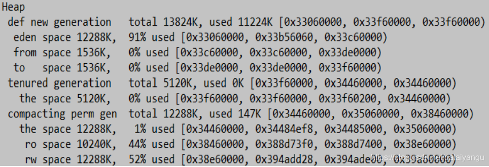 the space 12288K, 1% used [0x34680000, 0x346a3a90, 0x346a3c00, 0x35280000)