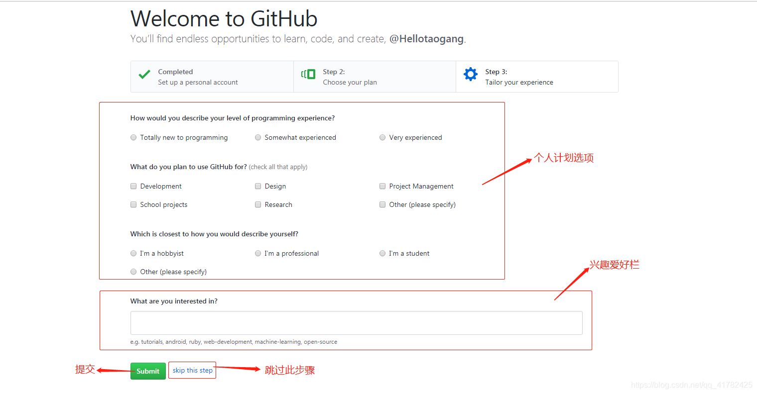 7.继续后进入第二步:选择您的个人计划,这一步直接点击skip this step(跳过该步骤即可)