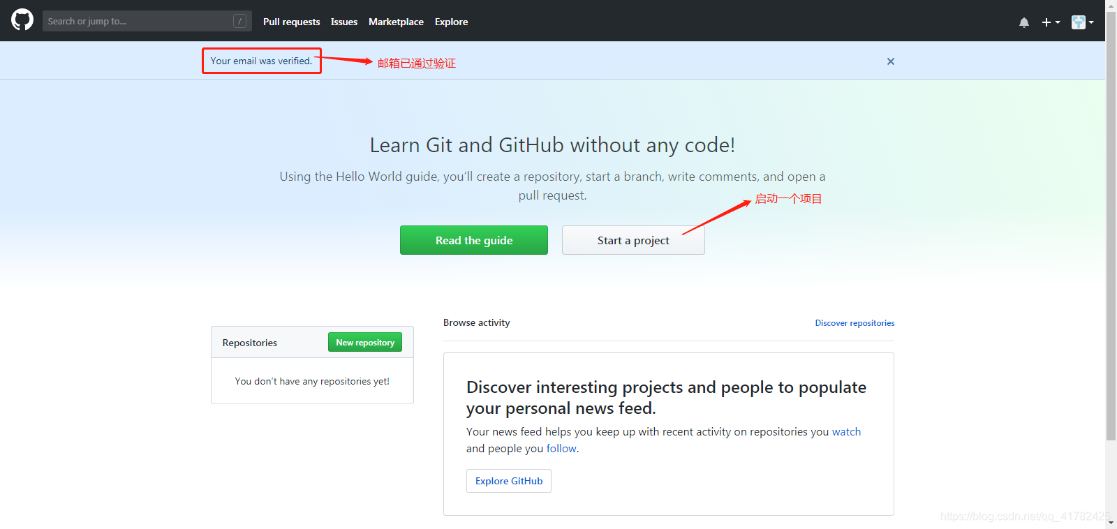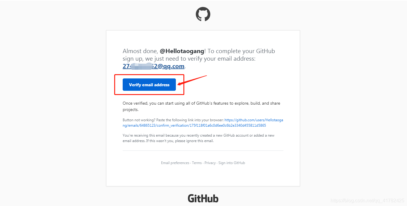 10.在邮箱中点击Verify email address后,即跳转到GitHub登录页面,输入用户名和密码即可完成注册---成功登录