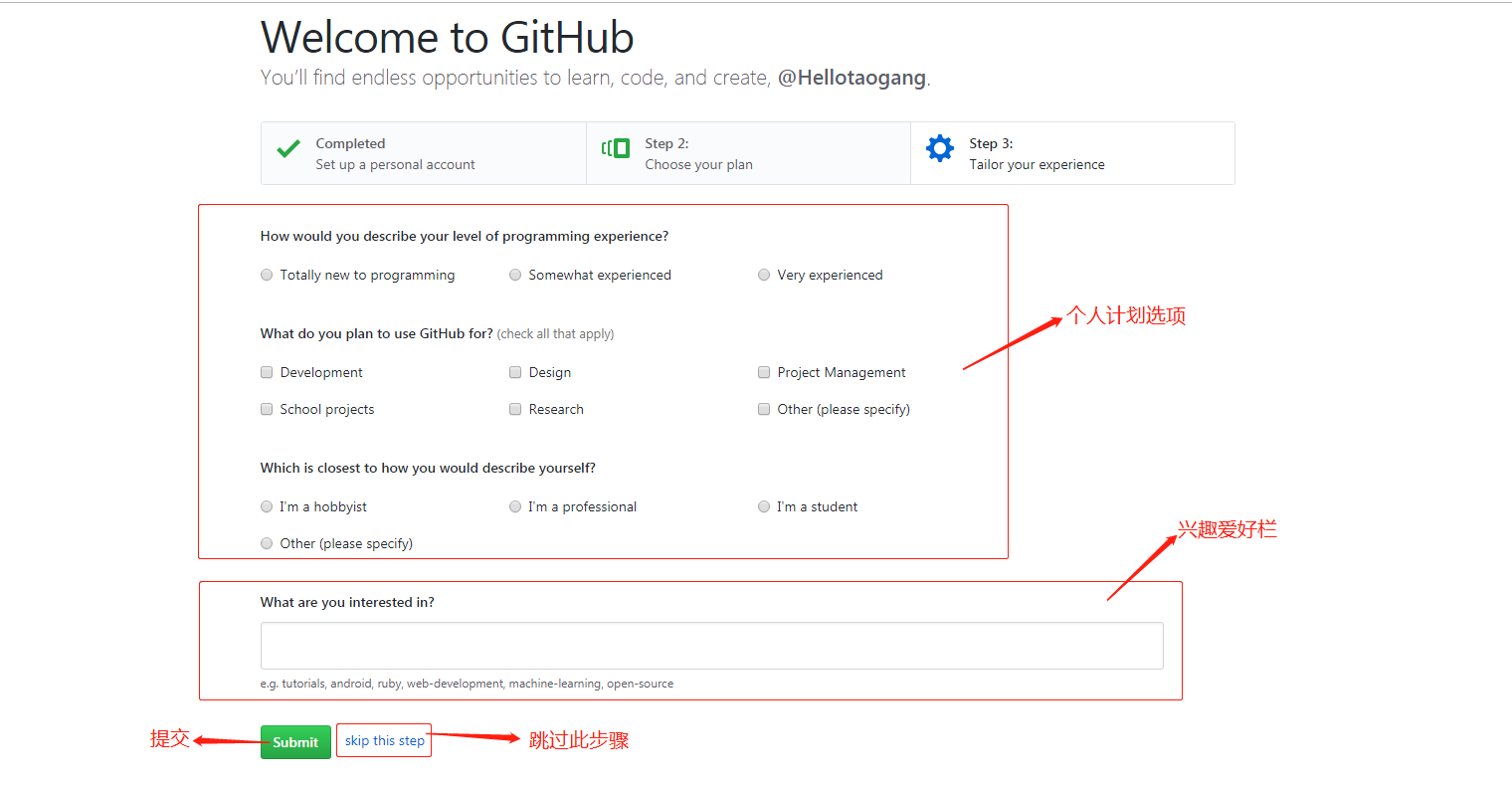 7.继续后进入第二步:选择您的个人计划,这一步直接点击skip this step(跳过该步骤即可)