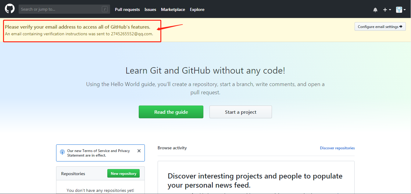 10.在邮箱中点击Verify email address后,即跳转到GitHub登录页面,输入用户名和密码即可完成注册---成功登录