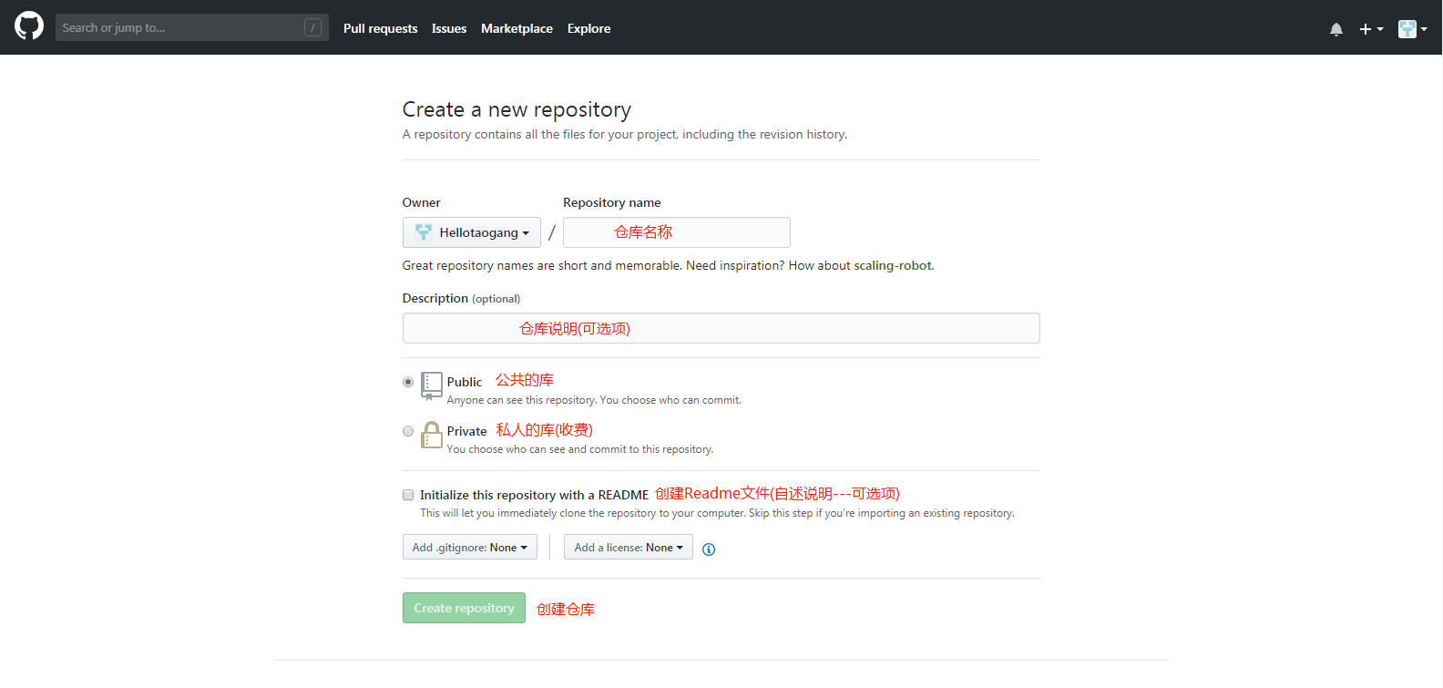 5.个人计划选择Free免费(Developer开发商付费的,每个月7美元,可以创建私有的仓库)