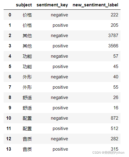 - 使用 groupby+agg 方法统计评论主题中消极和积极用户分布