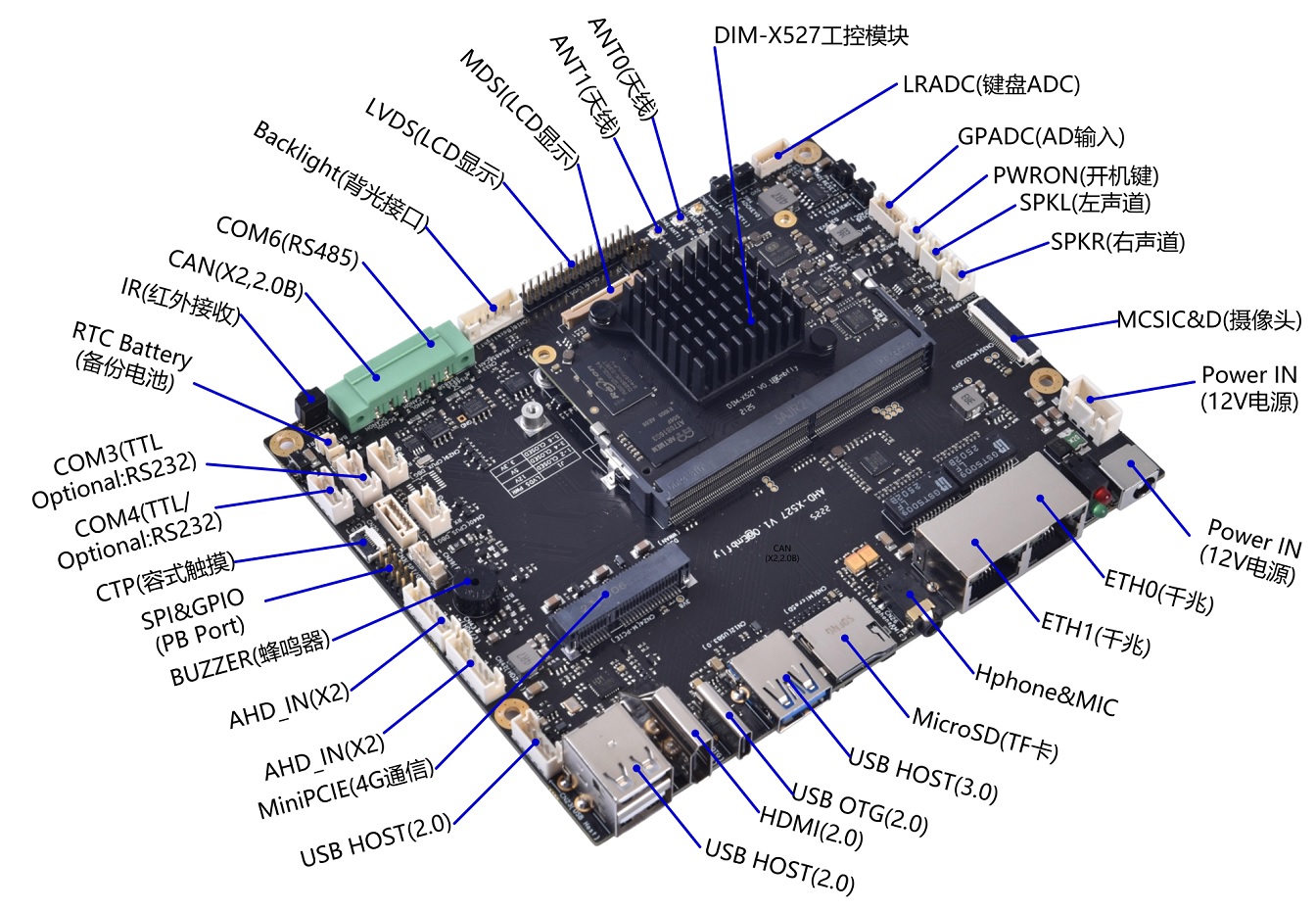 在此特别感谢盈鹏飞嵌入式大力支持,他们给我们提供了AHD-X527的主板,后续验证和文档内容都在AHD-X527主板上验证通过,主板技术参数如下: