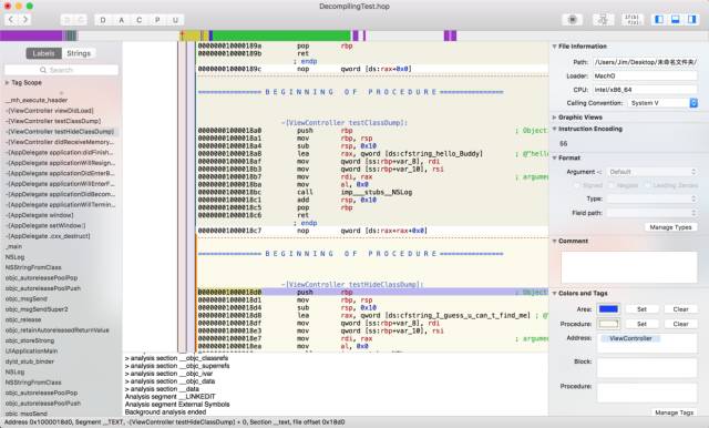 Hopper Disassembler的用法很简单,只要将二进制文件拖进去就行了。看看拖进去之后的结果。