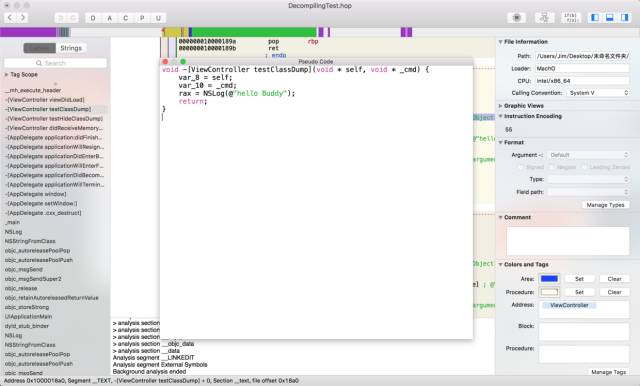 下一步我们要做的就是看看能不能拿到这两个方法的具体实现了,接下来我们用Hopper Disassembler来试试。