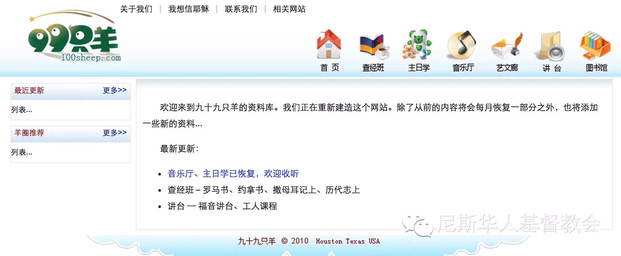 话说2007年1月1日开始,美国休士顿地区的广播电台的频道出现了一个由名为“99只羊”华人福音团队(99只羊的典故出自圣经路加福音15章3-7节:“耶稣就用比喻,说,你们中间谁有一百只羊,失去一只,不把这九十九只撇在旷野,去找那失去的羊直到找着呢? 找着了,就欢欢喜喜地扛在肩上,回到家里。就请朋友邻舍来,对他们说,我失去的羊已经找着了,你们和我一同欢喜吧。我告诉你们,一个罪人悔改,在天上也要这样为他欢喜,较比为九十九个不用悔改的义人,欢喜更大。”)制作的福音节目,名叫“世外桃源”。
