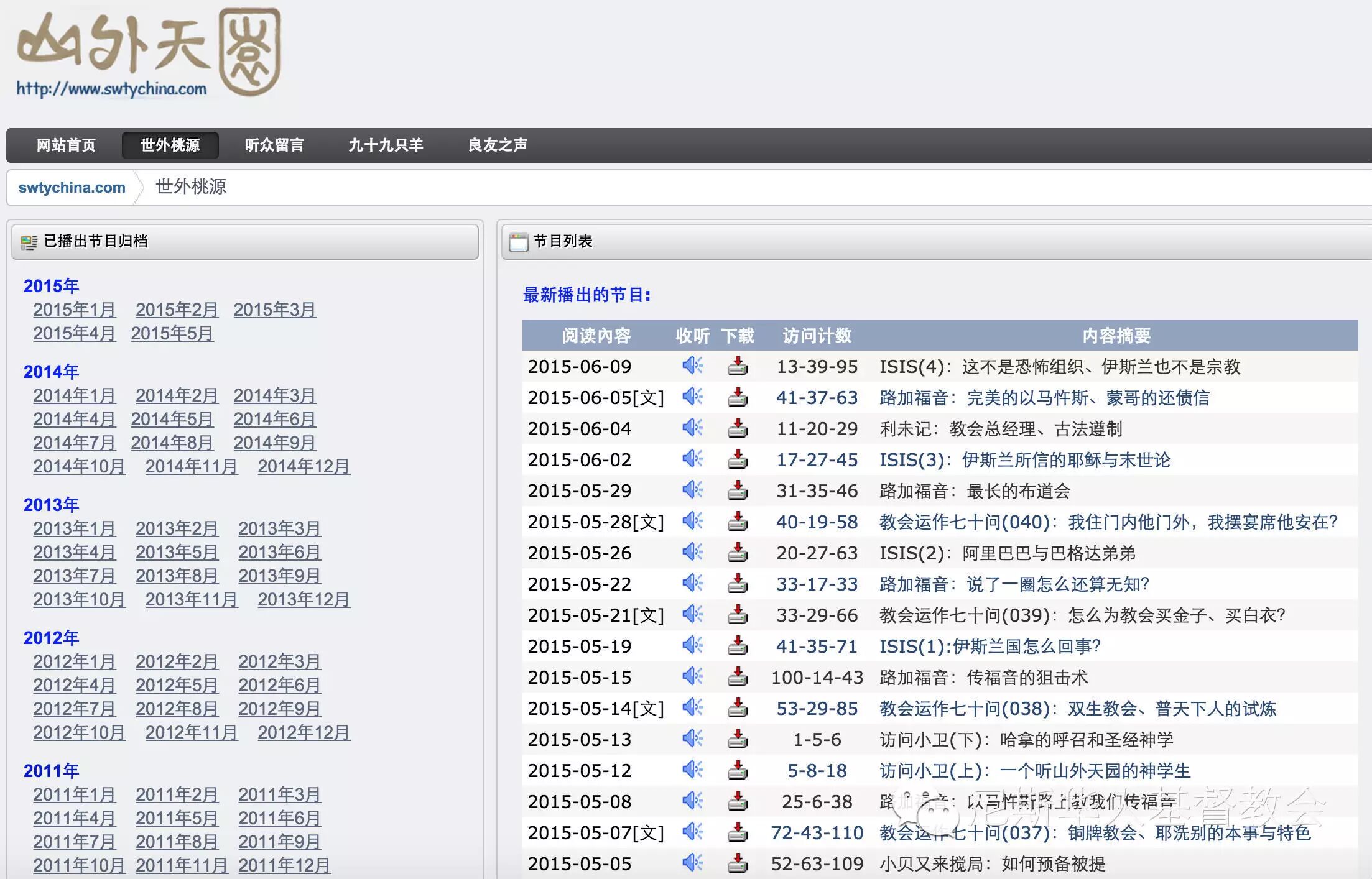 就这样,小编成为了世外桃源的忠实听(粉)众(丝),每期节目基本都听过,有的还不止一遍,所以可以拍胸脯向大家保证,这个节目所传播的福音是纯正的基督耶稣的福音,大家可以放心。