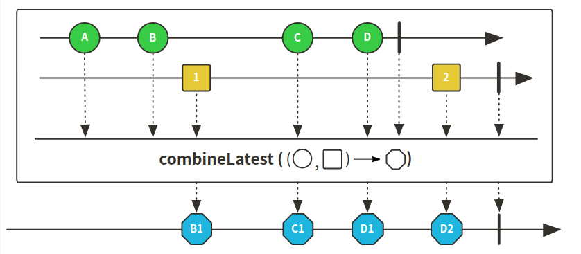 - 跟concat和merge不同该方法是将多个源的最后得到元素通过函数进行融合的到新的值