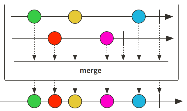 将由Publisher发出的Publisher序列的数据合并为交织合并序列。与concat不同的是,内部source踊跃竞争。