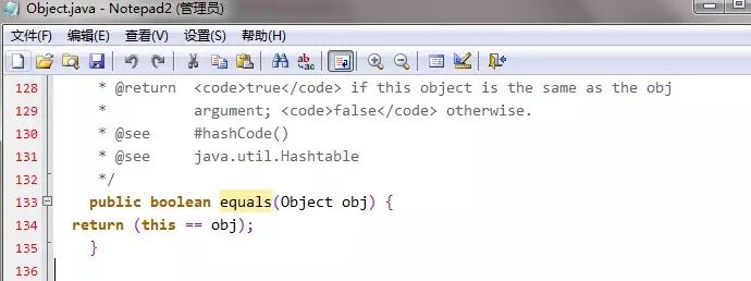 equals方法是基类Object中的方法,因此对于所有的继承于Object的类都会有该方法。为了更直观地理解equals方法的作用,直接看Object类中equals方法的实现。