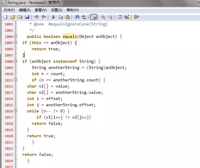 要知道究竟,可以看一下String类的equals方法的具体实现,同样在该路径下,String.java为String类的实现。