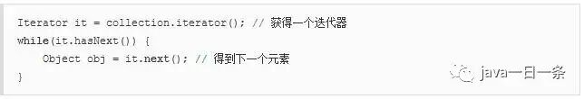 Collection有一个重要的方法:iterator(),返回一个Iterator(迭代器),用于遍历集合的所有元素。Iterator模式可以把访问逻辑从不同的集合类中抽象出来,从而避免向客户端暴露集合的内部结构。典型的用法如下: