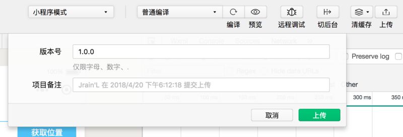 如果要发布预发布版本,需要运行 npm run build命令,打包出一个生产版本的包,然后通过小程序开发者工具的上传按钮上传代码,并填写测试版本号: