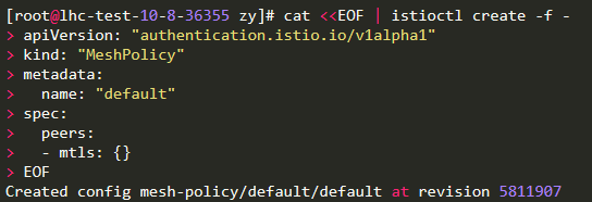 通过配置网格级别的认证策略启用全局双向TLS,首先配置网格认证策略: