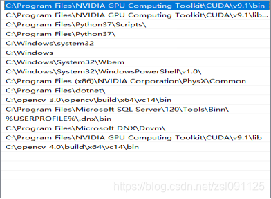 上面安装完后,看一下环境变量,我的是win10下的环境变量,特别注意opencv_3.0的环境变量; 一般cuda的环境变量会自动加入,不需要我们管