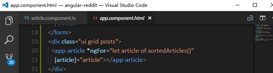 在主界面显示文章列表时,用*ngFor遍历,使用[article]=”**”可以向组件传递参数。