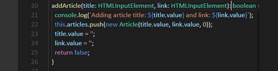 将对象作为参数传递给addArticle方法,在对应的ts代码中,可以获取newlink.value。newlink是HTMLInputElement类型。